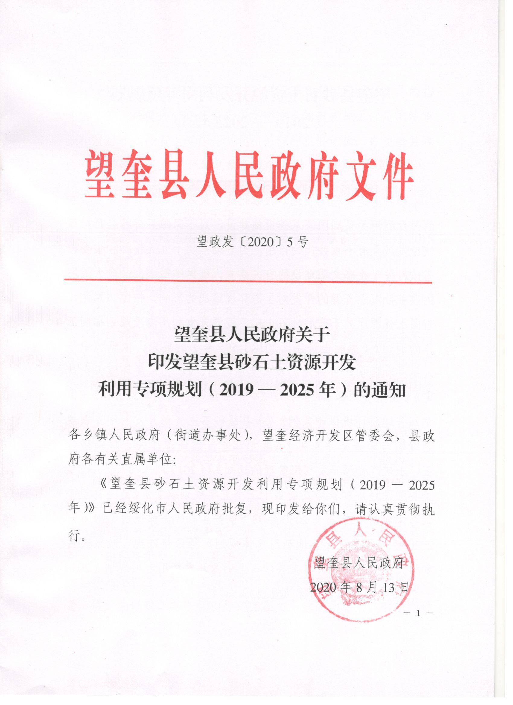 望奎县人民政府关于印发望奎县砂石土资源开发利用专项规划的通知