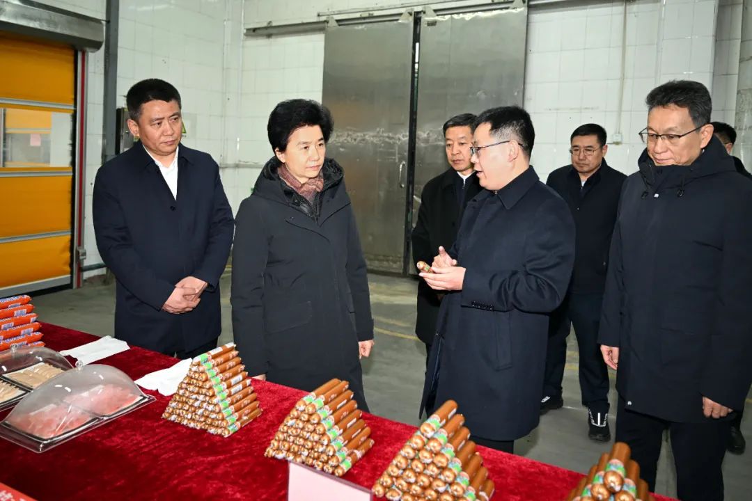 望奎双汇北大荒食品有限公司是一家从事生猪屠宰及肉制品开发、生产和销售的企业。梁惠玲走进企业生产车间,察看产品和生产线,了解企业生产经营情况。她强调,要充分发挥资源优势,推动畜牧产品生产和初加工、精深加工协同发展,加快冷链物流建设,强化产业就地协作配套,推进产业链价值链向中高端延伸。要根据不同消费群体需求,不断开发新产品、开拓新市场,增强企业市场占有率和竞争力。要守牢食品安全底线,严把进货渠道、生产工序等关键环节质量关,切实维护人民群众“舌尖上的安全”。