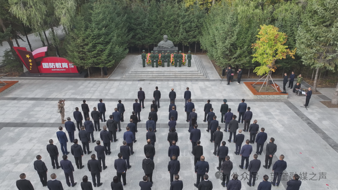 烈士陵园内,苍松挺立,气氛庄重。公祭活动开始,全体人员奏唱《中华人民共和国国歌》,随后礼兵踏着深情的《献花曲》节奏,稳稳抬起花篮,缓步走向烈士纪念碑和张锡武将军铜像,将后人的哀思与敬意敬献给英雄先烈。王顶、马天民神情庄重,缓步上前,在花篮前驻足凝视,仔细整理花篮缎带。全场人员肃立默哀,共同追思革命先烈,感受今天来之不易的幸福生活。
