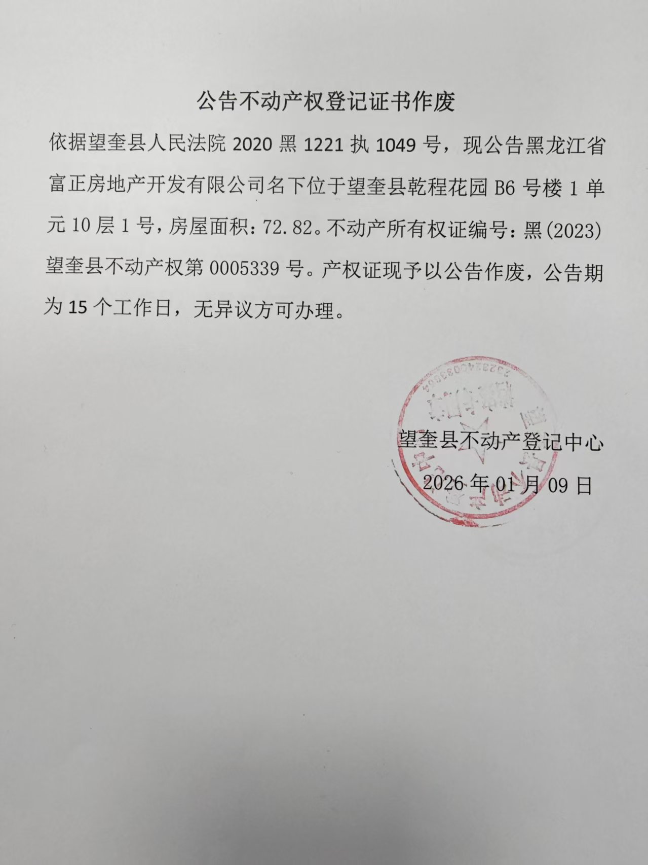 公告不动产权登记证书作废