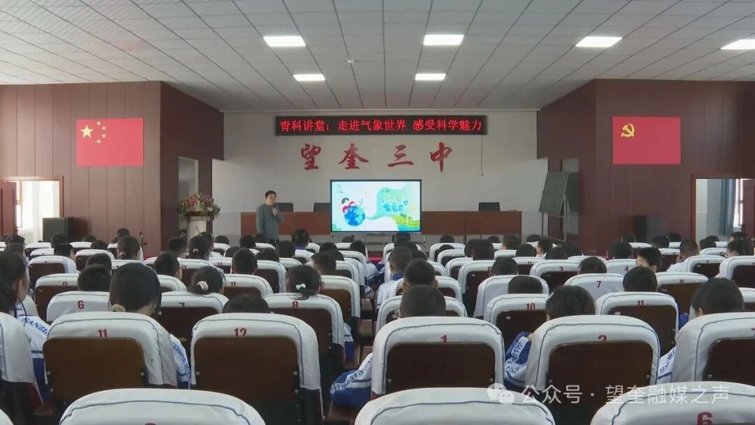 在县第三中学,县气象局工作人员以世界气象日由来为切入点,围绕气象发展历史、常见气象名词、气象与日常生活的关联等内容进行细致讲解,条理清晰、通俗易懂。趣味气象短片生动展现了气象局工作日常,瞬间点燃了现场氛围;在互动问答环节中,学生们踊跃举手、积极发言,答对问题的学生还收获了小礼品,进一步激发了大家的学习兴趣;在气象知识抢答赛上,学生们分组协作、踊跃比拼,在紧张又欢乐的竞赛氛围中,牢牢巩固了所学的气象知识。