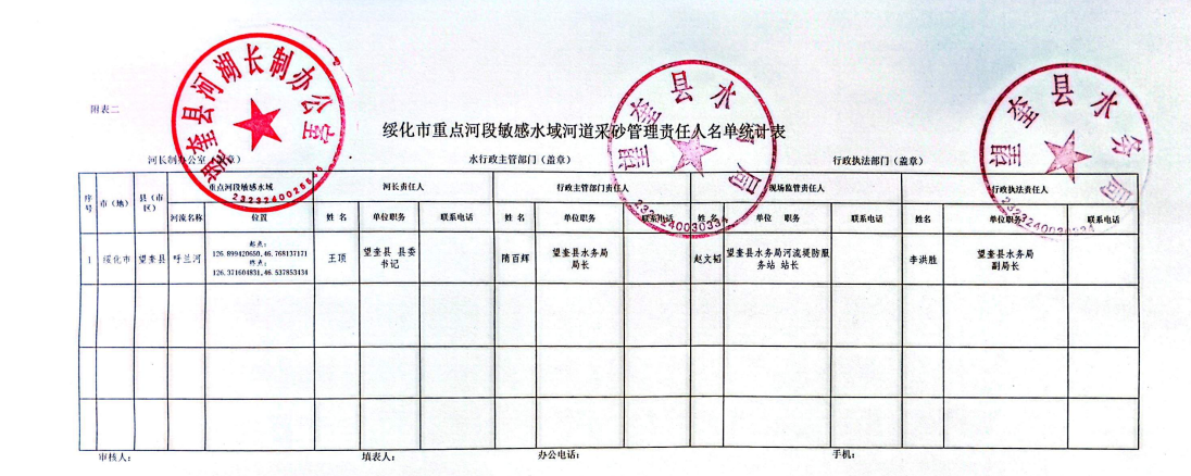 望奎县水务局关于公布全县河道采砂管理“四个责任人”名单的通知