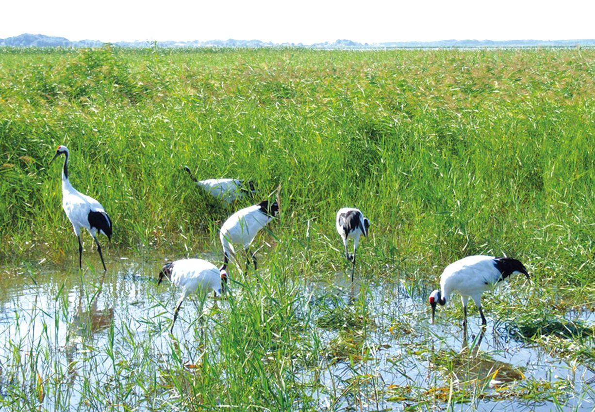 保护区地势平坦,有大面积的湿地植物群落和灌丛、为鸟类提供了良好的栖息和隐蔽场所。鸟类资源比较丰富,特别是水鸟种类数量较多,有鸟类145种隶属于16目27科78属,占全省鸟类的42.3%。常见种有大白鹭、鸿雁、白眉鸭、丹顶鹤、白枕鹤、凤头麦鸡、红嘴鸥、苍鹭、大天鹅、针尾鸭、绿头鸭、绿翅鸭、斑嘴鸭、普通鵟、白尾鹞等。