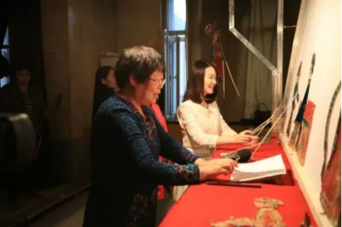 望奎皮影戏第四代传人谷宝珍演出中