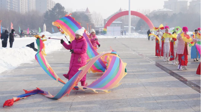 在县植物园的广场上,大秧歌、舞龙、健身操等表演吸引了众多群众。火红的东北民俗大秧歌、充满活力的健身操,充分展现了我县人民群众对冰雪活动的热爱。厢白满族乡乡长 王琪:“此次冰雪民俗文化节的举办对于全县文旅产业的发展具有十分重要的意义,丰富了全县人民的精神文化生活,提高了群众的幸福指数。作为乡镇干部,我将以此次活动为契机,全面发展好我们厢白满族乡的特色文旅产业,为建设‘兴业宜居、智慧共享’新望奎凝聚力量。”县植物园秧歌队队长 刘忠厚:“天气很冷,我们植物园秧歌队非常荣幸参加这次万人上冰雪活动。这次活动丰富了我们的业余生活,让我们体验了冰雪的魅力,希望以后多多举行这种活动,我们以后也会积极参加。”兴安街道办事处电业邨社区居民 王连海:“这是望奎县第一次举行这么大的冰雪活动,我特意来看热闹。这次活动丰富了我们群众的业余生活,希望以后多多地举办这样的活动。”