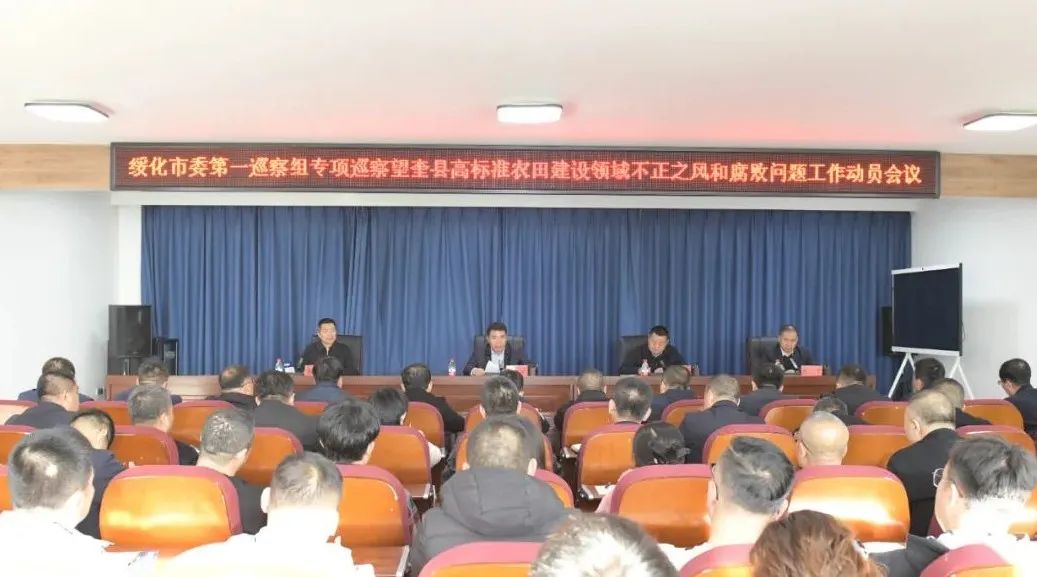 根据绥化市委巡察工作的统一部署,11月4日,绥化市委第一巡察组专项巡察望奎县高标准农田建设领域不正之风和腐败问题工作动员会议召开。绥化市委第一巡察组组长杨伯瑜、副组长张安军及巡察组相关同志,望奎县委巡察办主任张广学及县农业农村局、县自然资源局、县发改局、县水务局、县财政局等单位主要负责同志,各乡镇党委书记,县农业农村局全体干部职工参加会议。会上,绥化市委第一巡察组组长杨伯瑜同志作动员讲话,对做好本次巡察工作提出了具体要求。望奎县农业农村局党组书记、局长刘文学同志主持会议,并作表态发言。会议强调,要提高政治站位,坚决贯彻党中央决策部署及省、市委要求。进一步深刻领会开展巡察的重大意义,开展巡察是推进全面从严治党的重要举措,是厚植党执政基础的重要手段。要发挥政治巡察利剑作用,做深做实以项目立项审批设计、招标采购、施工、验收、资金管理使用和后期使用管护等“六个方面”为重点的政治监督。要坚持同题共答、同向发力,共同高质量完成好本轮巡察任务。要强化政治责任,强化协作配合,强化纪律要求。绥化市委第一巡察组将对市本级及10个县(市、区)高标准农田建设领域不正之风和腐败问题开展为期70天左右的专项巡察。巡察期间为便于干部群众反映问题,设信访联系电话:13163645059,接访地址:望奎县农业农村局209信访接待室;信访受理时间为工作日上午8时30分至11时30分,下午13时30分至17时,不分节假日;寄信地址:绥化市北林区迎宾路2号党政办公中心市委第一巡察组收,邮政编码:152000;受理日期:2024年10月14日—12月21日。根据巡察工作有关规定,市委第一巡察组主要受理被巡察单位领导班子及其成员、下一级党组织领导班子主要负责人和重要岗位领导干部问题的来信来电来访(来访以巡察组实际办公地点为主),重点是立项审批设计、招标采购、项目施工、项目验收、资金管理使用、后期使用管护等方面问题的举报和反映。其他不属于巡察受理范围的信访问题,将按规定处理。